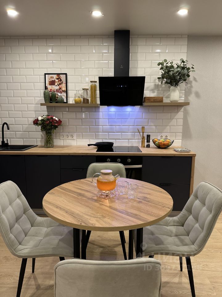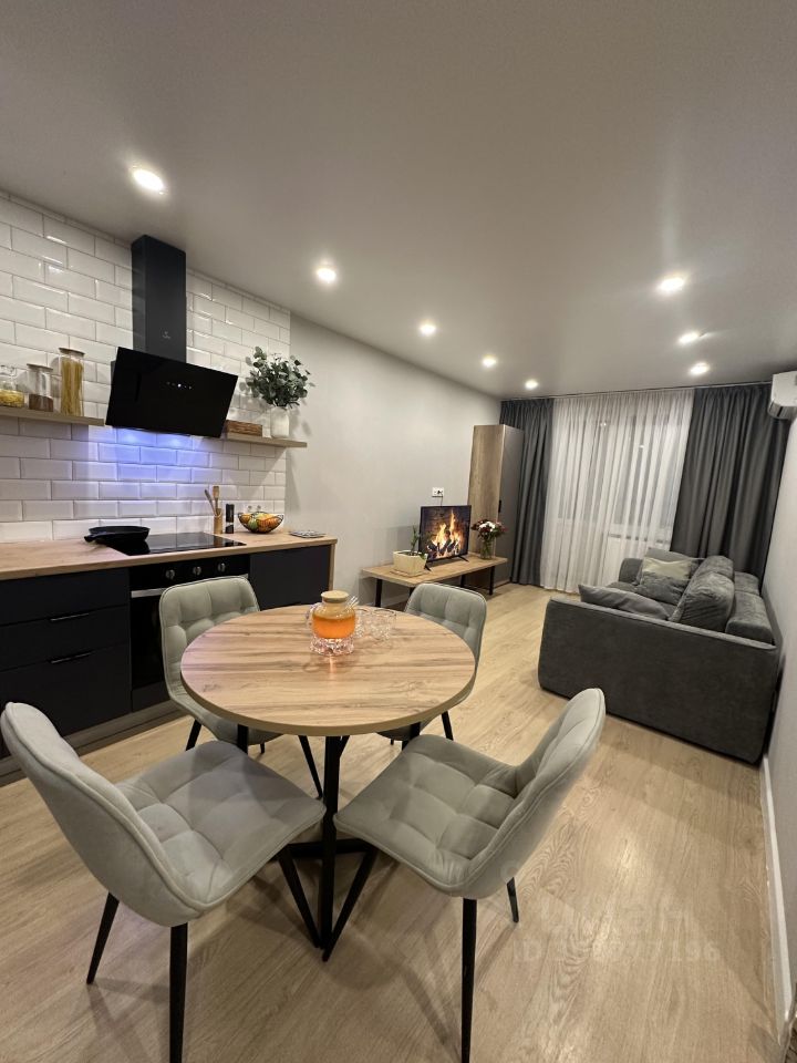 Большая стильная кухня-гостиная 25 м, встроенный холодильник и много ящиков для хранения. Диван-трансформер раскладывается как в угловой так и в огромное двуспальное место.