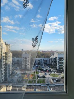 Квартира с дизайнерским ремонтом, полностью меблирована и оснащена необходимой техникой( 3 шкафа, 2 комода, письменный стол, кровать 160*200, диван -кровать 90*200 с ортопедическими матрацами). Здесь есть холодильник, телевизор, стиральная и посудомоечная машины, микроволновая печь, духовой шкаф с грилем, фильтр-установка. Окна выходят во двор, поэтому в квартире всегда тихо и спокойно. Планировка включает одну лоджию и отдельный санузел с ванной.