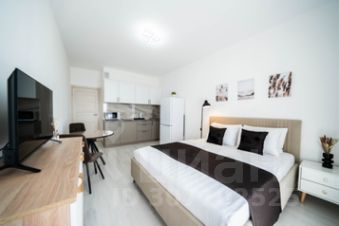 Студия для посуточной аренды расположена по адресу: Санкт-Петербург, проспект Авиаконструкторов, д. 69, новый современный жилой комплекс в спальном районе.