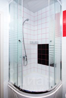 -ванная комната с теплым полом, душевой кабиной, фен, туалетные принадлежности;