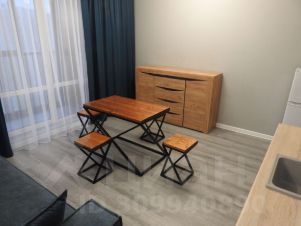 в ЖК "Parklovo" от собственника по адресу: Михайловская дорога 14.к.1. В квартире имеется большой и вместительный кухонный гарнитур со встроенной техникой итальянской фирмы "Lex", просторной столешницей для готовки, шкаф, комод, обеденная группа, прихожая. Бытовая техника: плита, чайник, микроволновка, стиральная машина. Лоджия дополнительно оборудована встроенным шкафом, который можно использовать для хранения крупногабаритных вещей. С лоджии открывается красивый вид на двор и соседние дома, нет ощущения "окна в окна". Студия оборудована большими французскими окнами в пол, которые дают хорошее освещение во всей квартире и шторами блэкаут для практически полного затемнения. В случае необходимости дополнительной мебели и бытовых приборов приобретём по договоренности.