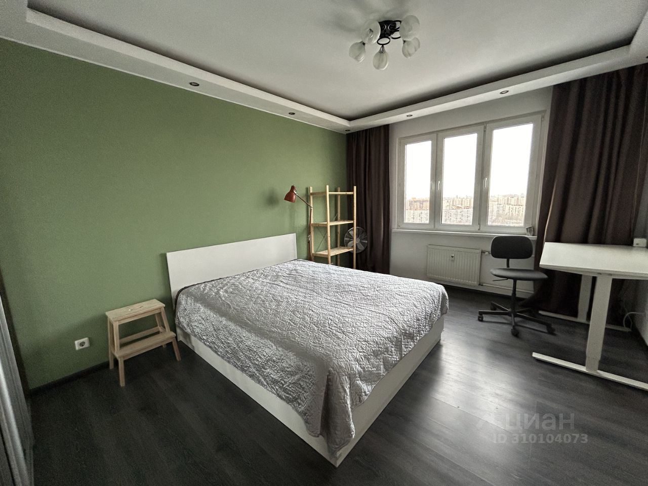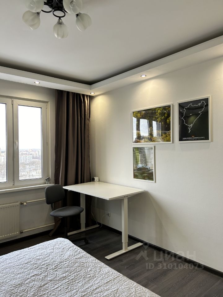 В комнате стоит новая кровать 160х200 с подъемным меанизмом и матрасом средней жесткости, рабочий стол также с подъемным механизмом, шторы блэкаут.