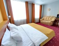 На каждом этаже ведется видеонаблюдение, на всей территории отеля бесплатный WI-FI. На каждом этаже гладильная доска с утюгом. Так же в отеле есть услуга стирки и быстрой сушки белья. На ресепшн, можно купить напитки и сладости, так же имеется мини-бар. Отель принимает туристов, гостей нашего города, рабочих или командировочных, так же большие группы спортсменов. Очень будем Вам рады!