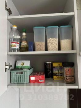 На кухне — посуда, чайный набор, набор круп, масло, специи, электрический чайник, холодильник, микроволновая печь, кухонная плита.