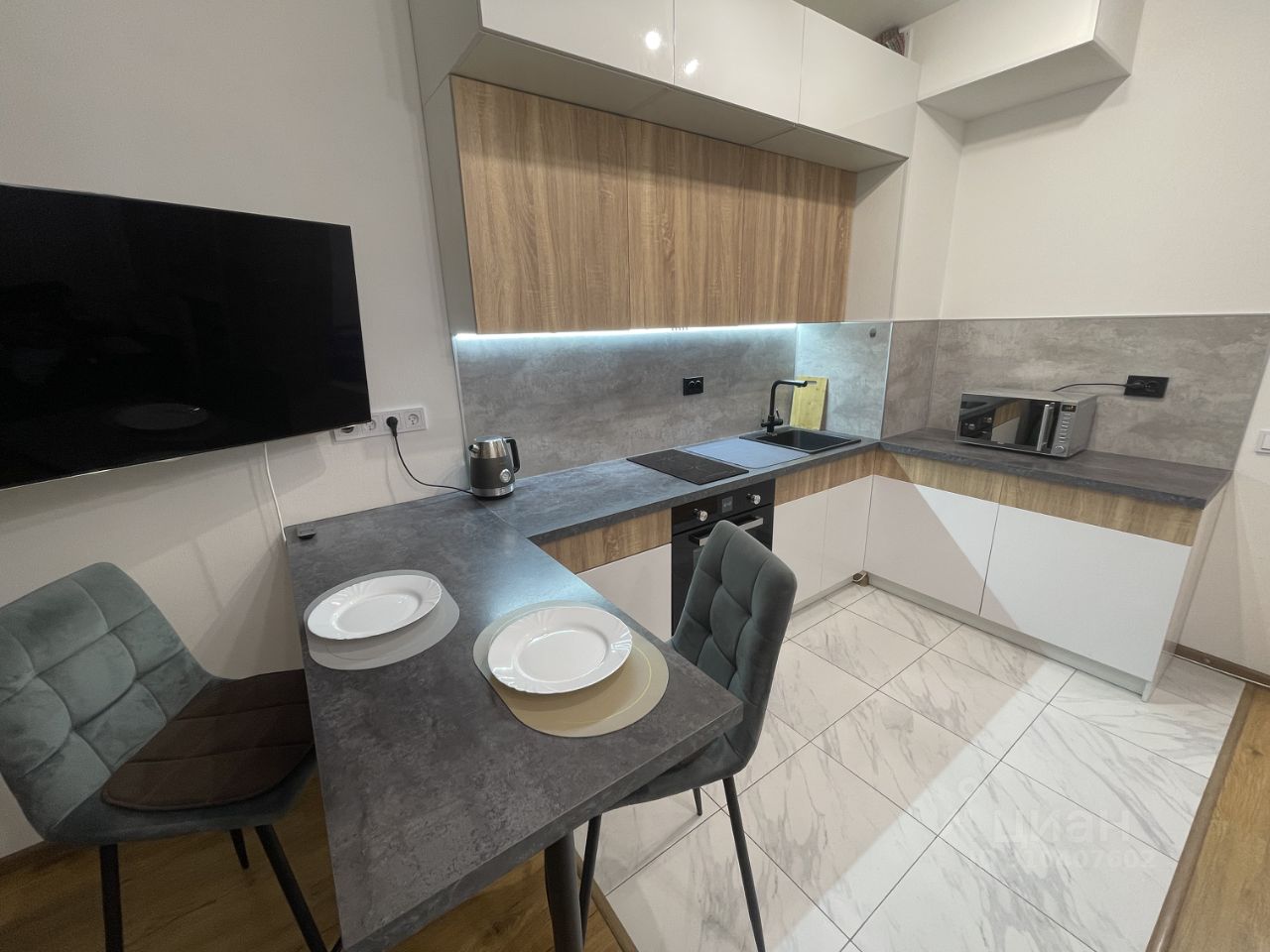 Стильный стол с полуторными стульями.Телевизор. Wi Fi