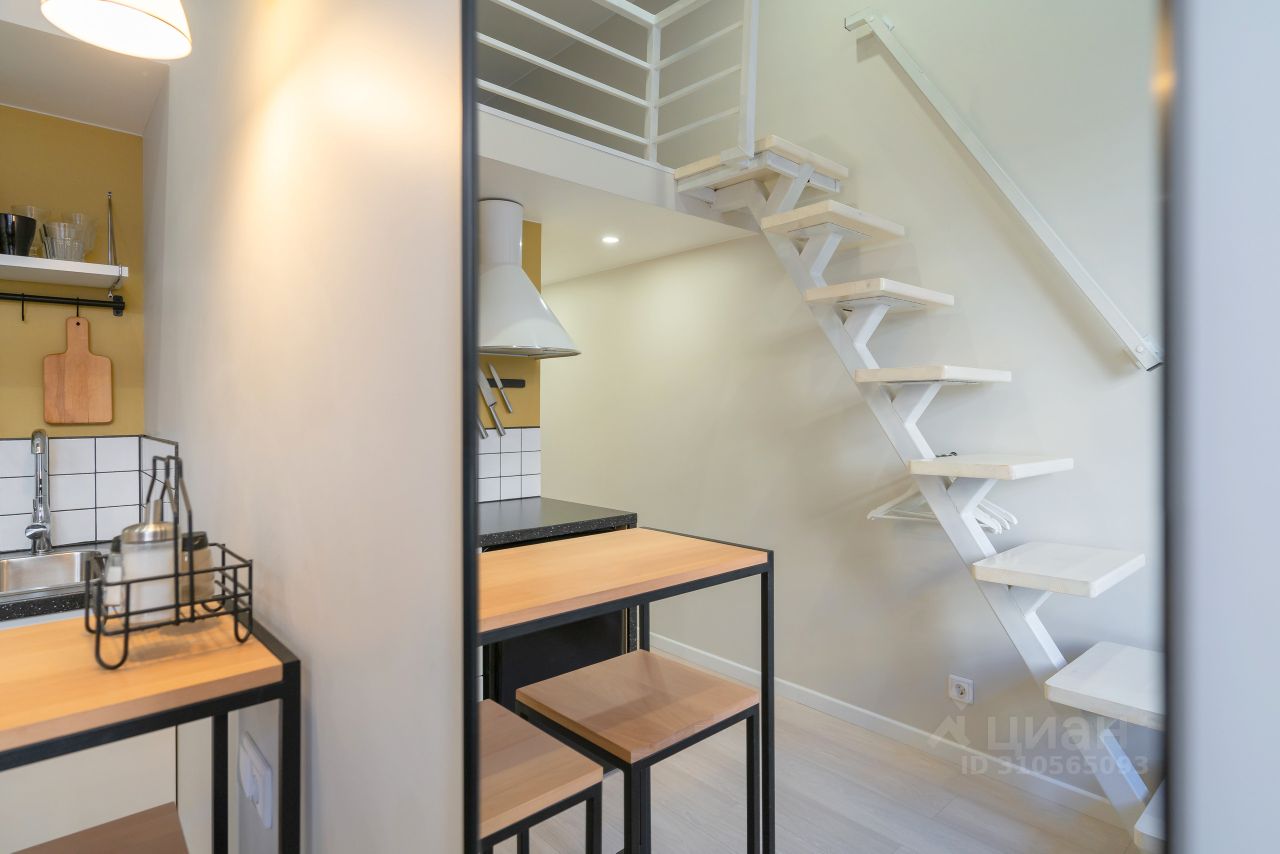 Небольшая, но уютная студия, есть все необходимое для комфортного пребывания на пару дней или на длительный период. Спальное место на втором этаже. Комфортная ванная с душем.