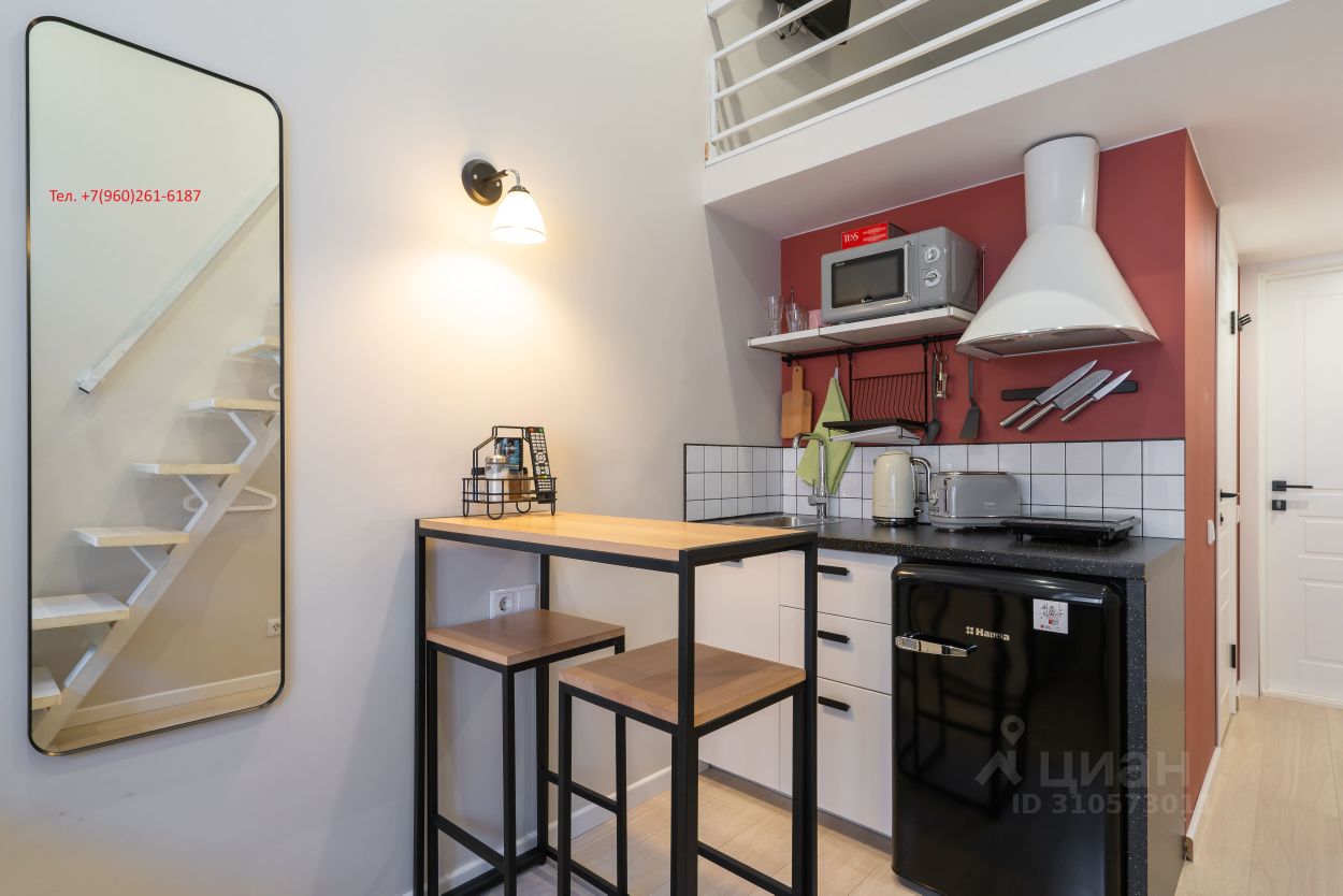 Небольшая, но уютная студия, есть все необходимое для комфортного пребывания на пару дней или на длительный период. Спальное место на втором этаже. Комфортная ванная с душем.