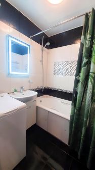 В квартире есть всё для комфортного проживания. Встроенная кухня со всей необходимой техникой, включая посудомоечную машину, стиральная машина, 2 телевизора Smart TV, пылесос, посуда, постельные принадлежности, интернет wifi. Свежий качественный ремонт, сантехника grohe, термостатический смеситель в душе, кровать king size с ортопедическим матрасом.