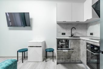 ДИЗАЙНЕРСКИЙ РЕМОНТ: Новая квартира уникальна своей функциональность. Особенность студии- это мебель-трансформер: полноценная двухспальная кровать с матрасом фирмы Аскона, диван, стол-трансформер и стулья, вместительные шкафы. Так же есть вся необходимая техника: варочная панель, духовой шкаф, вытяжка, посудомоечная машина, холодильник, стиральная машина, цифровое телевидение, смарт ТВ, WI FI. Установленны датчики протечки, умное управление климатом. Окна в квартире выходят в закрытый, охраняемых двор.