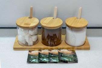Кухня со всем необходимым для готовки, чай, кофе, сахар