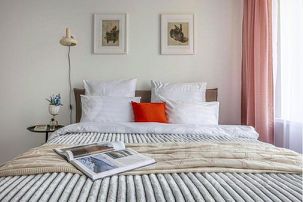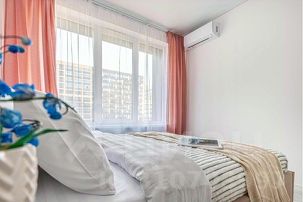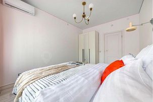 В квартире 2 спальни и кухня-гостиная. В спальне двуспальная кровать king size размера с ортопедическим удобным матрасом и качественным бельем. Вместительный шкаф для одежды, зеркало в полный рост. У кровати ночник для чтения - уютная и очень удобная деталь.