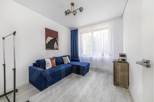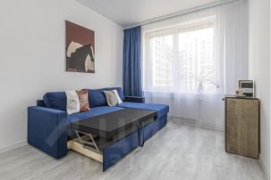 Во второй спальне удобный раскладной двуспальный диван, вместительный шкаф для одежды и письменный стол для работы или учебы.