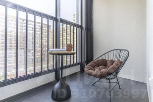 Просторная лоджия оборудована для отдыха: удобное мягкое кресло, кофейный столик будто созданы для романтических вечеров!