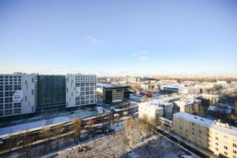 Однокомнатная квартира в Красногвардейском районе для 3 гостей рядом с Ладожским вокзалом с видом на панораму Петербурга и Смольный собор.