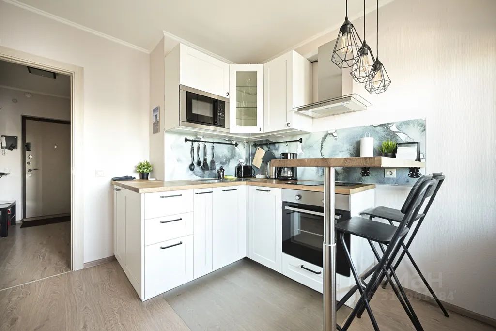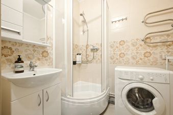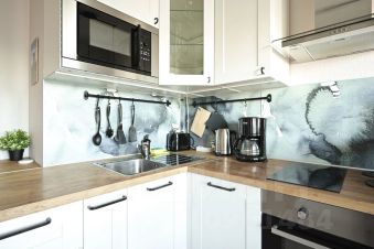 - Кухня: индукционная плита, чайник и кофе-машина, холодильник, стиральная машина