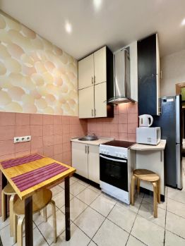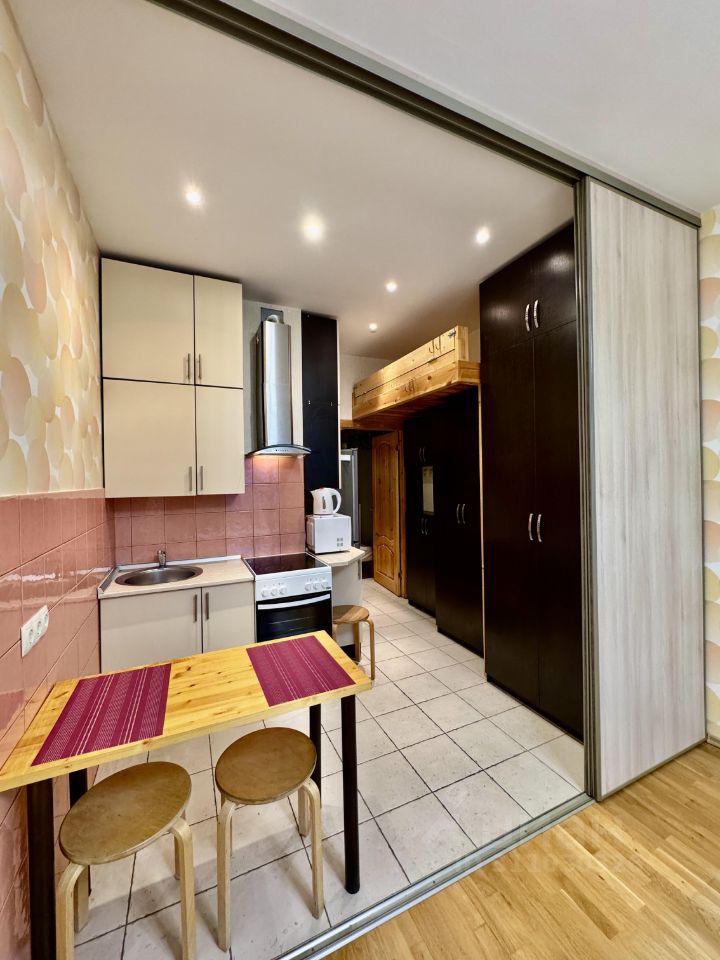 Квартира полностью готова к проживанию: есть холодильник, телевизор, плита, микроволновая печь и стиральная машина. В кухне и комнате установлена удобная мебель, новая кровать с матрасом 160*200, а в ванной комнате — ванна. Квартиру возможно разделить на 2 зоны откатными перегородками. Установлены вместительные шкафы, есть дополнительное спальное место виде кровати на втором ярусе. Балкон дополняет жилое пространство, предоставляя возможность наслаждаться свежим воздухом.