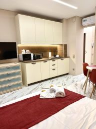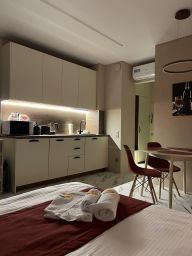 В апартаментах есть все необходимое для приятного отдыха: удобные кровати, мягкие подушки, просторные душевые и уютные кухни-гостиные, где можно расслабиться после насыщенного дня. Полностью оборудованная, кухня позволит приготовить свои любимые блюда прямо на месте. Современная техника и стильный дизайн создадут идеальную атмосферу для кулинарных экспериментов и приятных ужинов в кругу семьи и друзей.