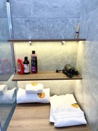 Много полотенец, мягкие халаты, косметические и гигиенические принадлежности для каждого гостя