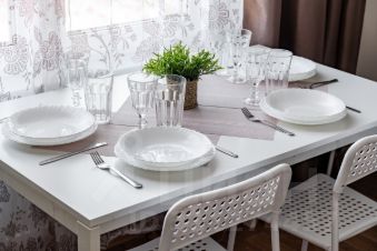 + КУХНЯ и ПОСУДА для приготовления и приема пищи: кастрюли, сковородки, тарелки, чашки, бокалы, стаканы, столовые приборы.