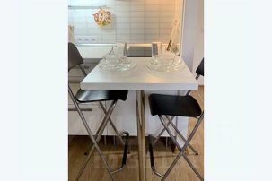 - кухня с барной стойкой оборудована всем необходимым (посуда, приборы, вся бытовая техника: инверторная плита, чайник, пароварка)