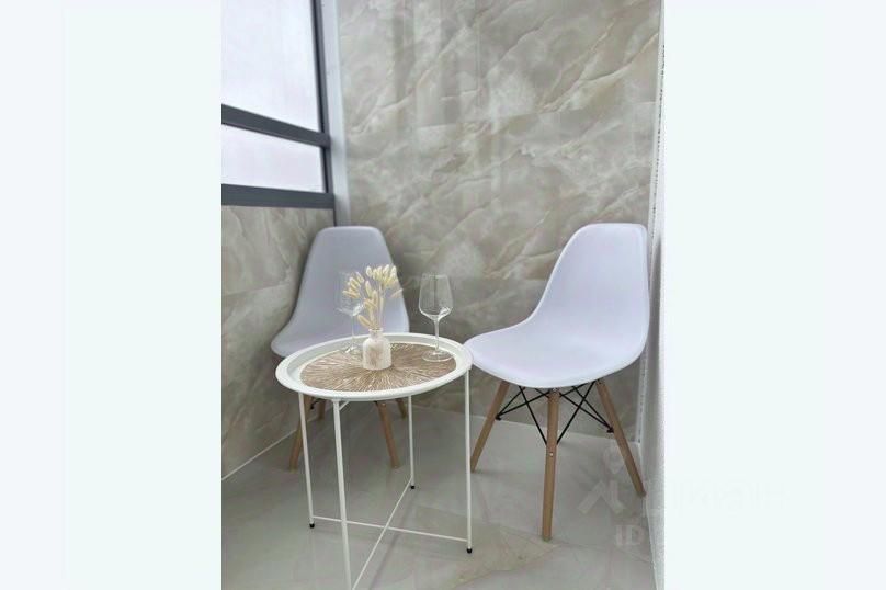 -Просторная лоджия с удобными креслами и видом на спокойный, современный двор.
