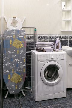 Микроволновая печь, фен, электрический чайник, холодильник, электрическая плита с духовым шкафом, утюг с гладильной доской, стиральная машина.