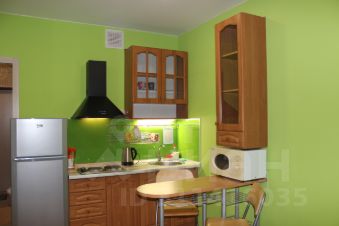 На кухне двухкамерный холодильник, встроенная двухкомфорочная плита + вытяжка, удобная барная стойка + 2 складных барных стула, микроволновка, чайник, удобная организация кухонного пространства. В комнате шкафы, двухспальная кровать, ТВ с тумбой, стол. В прихожей много места для хранения. Куплена новая стиральная машинка. На лоджии сделан пол и постелен ковролин, стоит тахта.