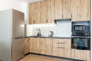 - В кухонной зоне: микроволновая печь, плита, холодильник, чайник, посуда и столовые приборы на любой случай. Чай, кофе, сахар, соль, конфеты.