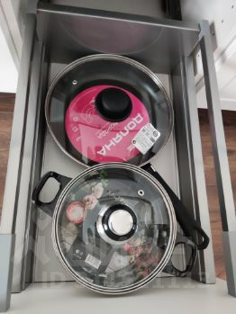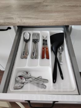 •Полноценная кухонная зона (xoлодильник no frost, СВЧ, варочная панель на две комфорки, духовой шкаф, чайник, вытяжкa). Так же включена посуда для приготовления и сервировки.