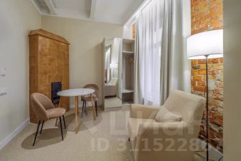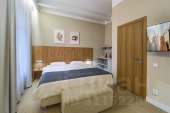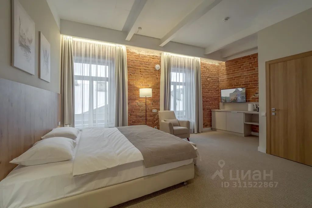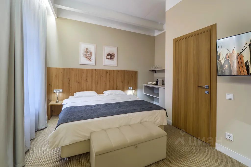 В номере: двуспальная кровать, шкаф для одежды, кресло, торшер, зеркало, тв, прикроватные тумбочки, мини-кухня (чайная и кофейная станции, посуда, мини-холодильник).
