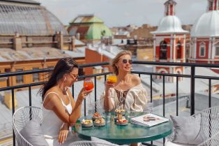 В пешеходном переулке уникальная атмосфера и множество ресторанов, в том числе лучшие в городе итальянские рестораны: терраса VOX и L'Eclat с прекрасным видом на Фонтанку.
