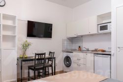 кухня укомплектована всем необходимым: холодильник, микроволновая печь,индукционная плита, вытяжка, стиральная машина. Всегда для наших гостей чай, кофе, сахар, соль