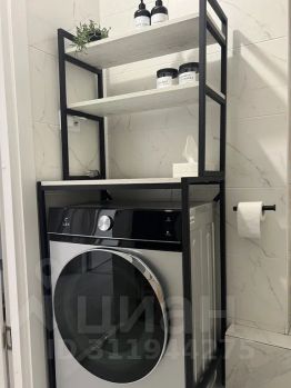 В ванной душу согреет теплый пол: ) и возможность принять горячую ванну после долгого дня прогулок. Также в санузле находится стиральная машина, фен и зеркало с подсветкой.