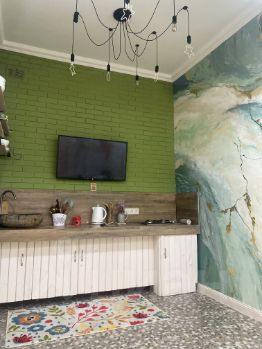 Этот проект готовился с любовью и его облагораживали деталями живой росписи по стенам.