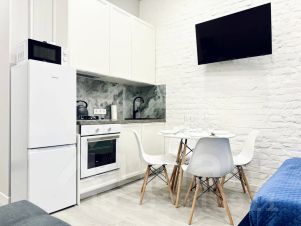 Студия с новым ремонтом, мебелью и техникой расположена в Центральном районе Петербурга - на улице Рубинштейна 25.