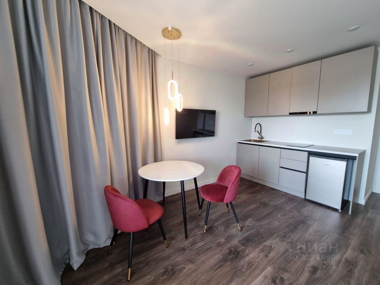 В комнате качественный диван, подходящий для комфортного ежедневного сна, который в разложенном состоянии дает спальное место размером 160*200. Телевизор 43, кухня на хороших комплектующих с доводчиками, чайник, микроволновка.