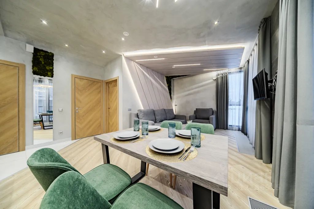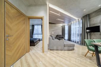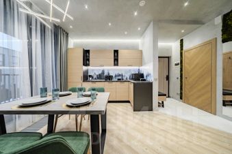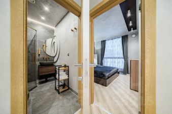 - Вся необходимая техника для комфортного проживания: стиральная машина, фен, утюг, ТВ и Wi-Fi, капсульная кофемашина, посудомойка, микроволновая печь, варочная панель и др.;