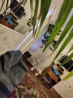 В комнатах: пол паркет (красное дерево, лак), мебель - вместительная стенка (Румыния, Дарья, в идеальном состоянии), 2 комплекта кресел, много зелени, цветов, туалетный столик, торшер, бельевой и платяной шкафы.