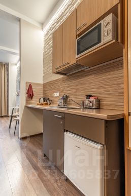 Оборудованная кухонная зона (холодильник, варочная панель, микроволновая печь, чайник)