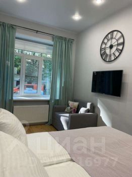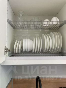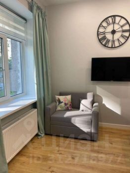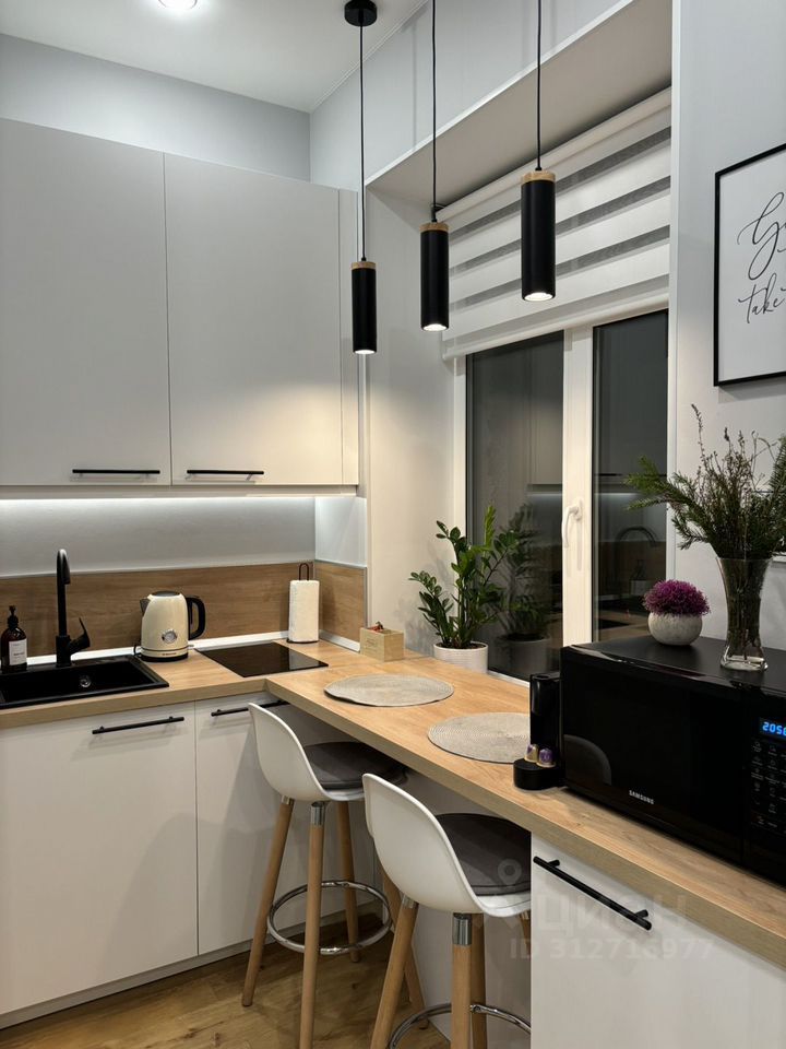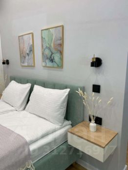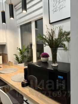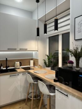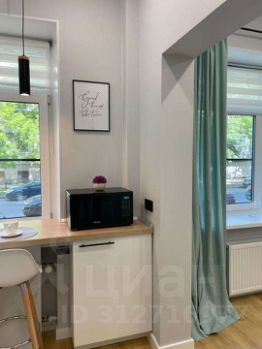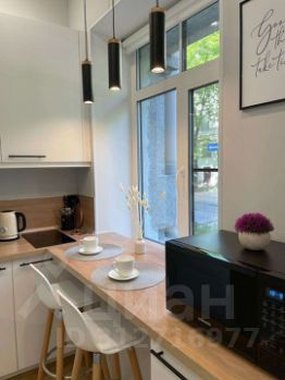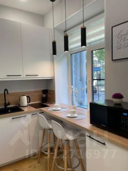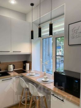 В студии дизайнерский ремонт и есть все необходимое для комфортного проживания. Кухня, укомплектована всем необходимым: плита, холодильник, кофемашина, посуда, микроволновка.