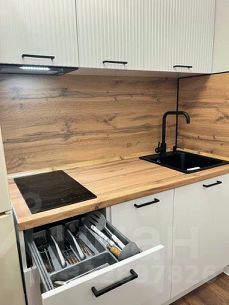- оборудованная кухонная зона (варочная панель, вытяжка, вместительный полноразмерный холодильник, чайник, мойка со встроенным диспенсером для мыла, мягкие стулья и раздвижной стол)