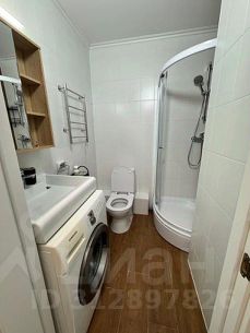 - Современный санузел с удобными полками, электро полотенцесушителем и стиральной машиной
