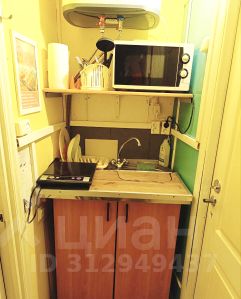 На кухонной зоне имеется плитка для приготовления, микроволновка, чайник, фильтр и посуда.
