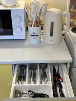 Кухня: диван-кровать, техника, посуда