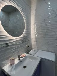 САНУЗЕЛ: совмещенный. Душевая с тропическим душем, подвесная тумба, зеркало с подсветкой. Стиральная машинка.