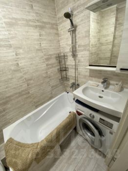 Сдается светлая и уютная однокомнатная квартира с хорошим ремонтом. Есть все необходимое для проживания (мебель, техника, посуда). На кухне есть раскладной диван.