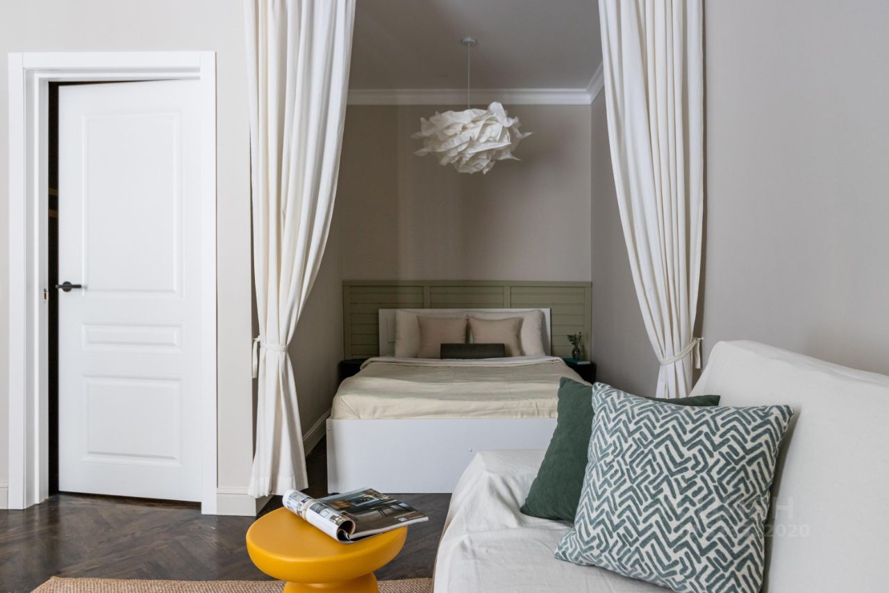 Антикварный шкаф, отреставрированное зеркало в полный рост и оригинальный дубовый паркет никого не оставят равнодушным и подарят истинную атмосферу Петербурга.