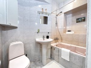 - В ванной комнате есть ванная, фен, гель для душа и шампунь
