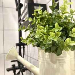 Ванная комната: тропический душ, стиральная машина, полотенца, гигиенические средства