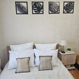Чистое постельное бельё, полотенца (большое и маленькое) для каждого гостя, утюг, гладильная доска, фен.